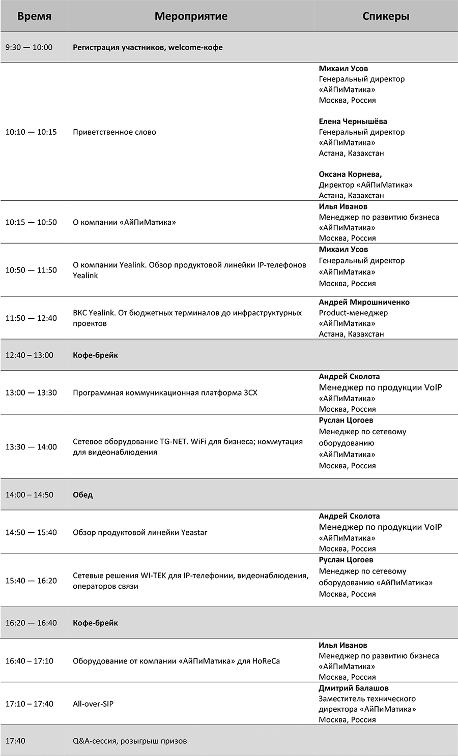 11 сентября состоится конференция, посвященная продуктам для построения телекоммуникационных сетей. В ходе встречи будут рассмотрены IP-телефоны и АТС, ВКС-системы, программное обеспечение, видеонаблюдение и многое другое. Участников мероприятия ждут подробные презентации о новых разработках и решениях Yealink, Yeastar, 3СХ, TG-NET, Wi-Tek, а также обзор других брендов.